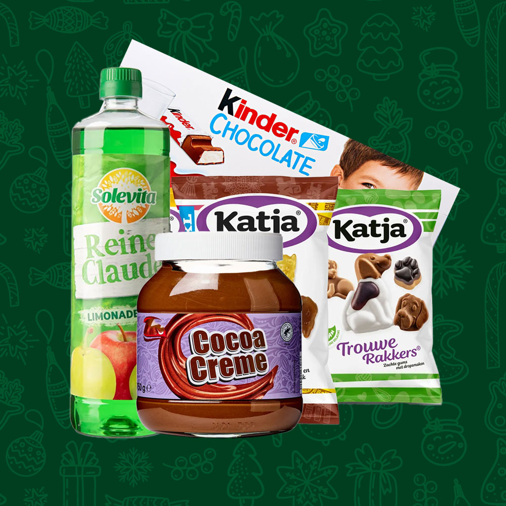 Pakket met lekkere dingen voor de kids, zoals limonade, chocopasta, snoep, chocola etc.